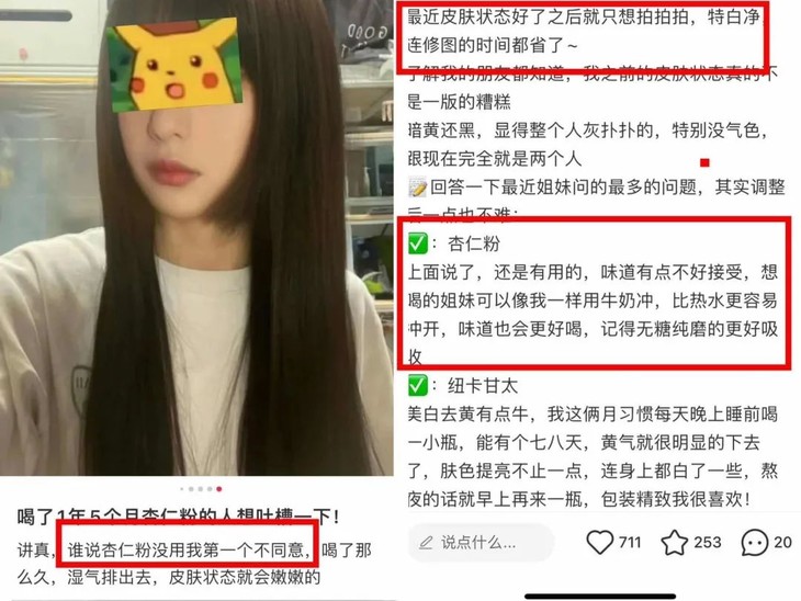 常年喝杏仁七白粉的人,干燥的皮肤也会像“喝了水一样”,气色好了并且有光泽了。