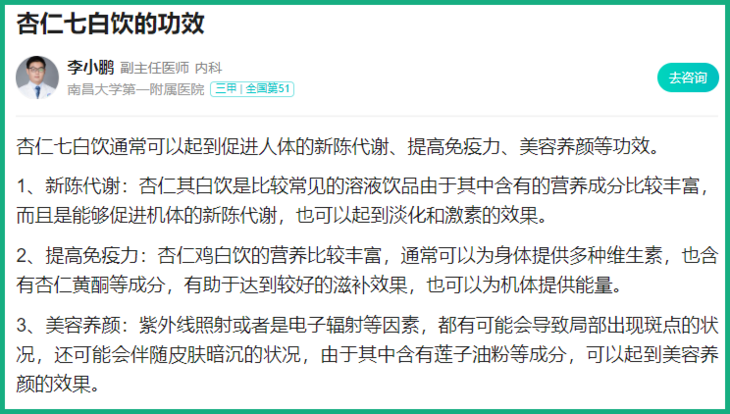 这个方法一直被收录在食补的方子里流传于世,现代人称它为「杏仁七白饮」。