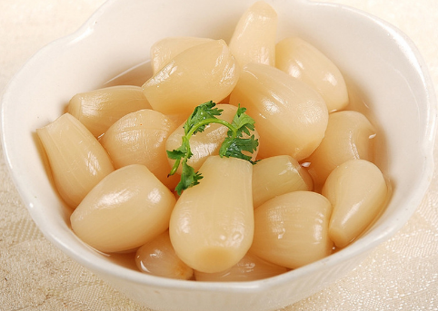 糖醋薤白的制作方法:取薤白头,装盘,用盐杀一下。放白糖、白醋调味装入密封的容器,放在阴凉处 2~3 周后,即可食用。