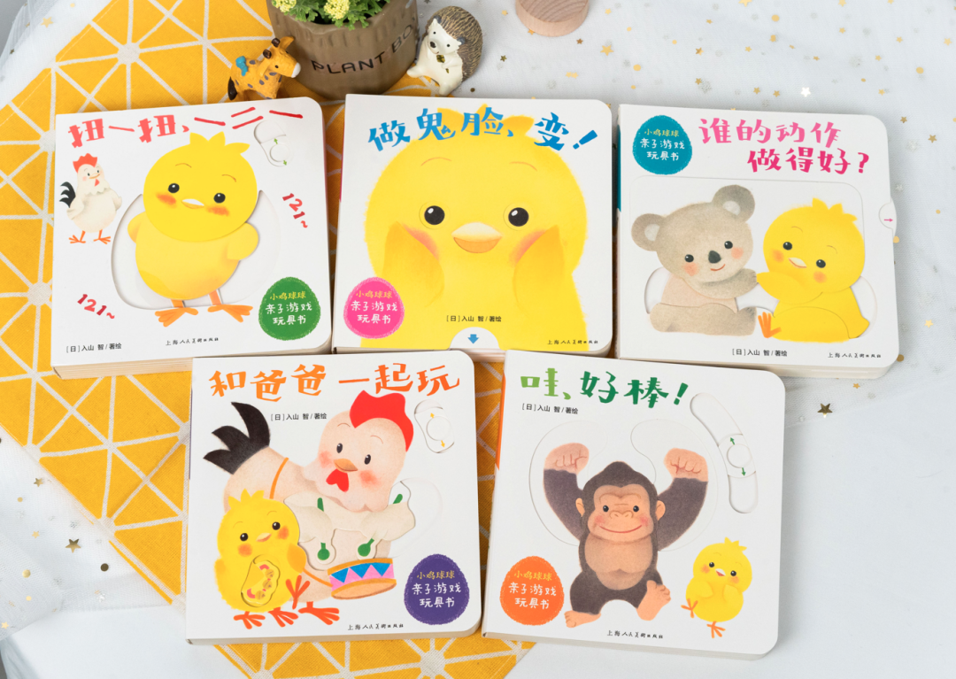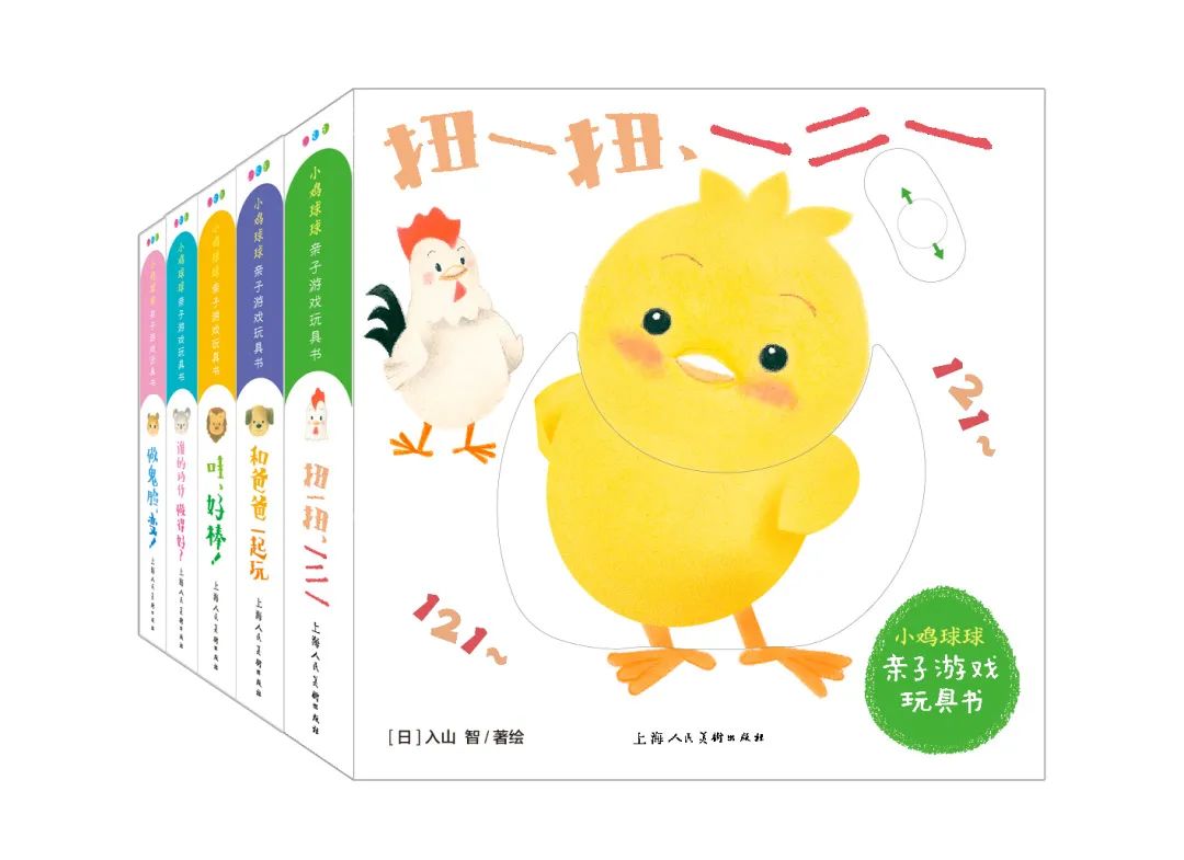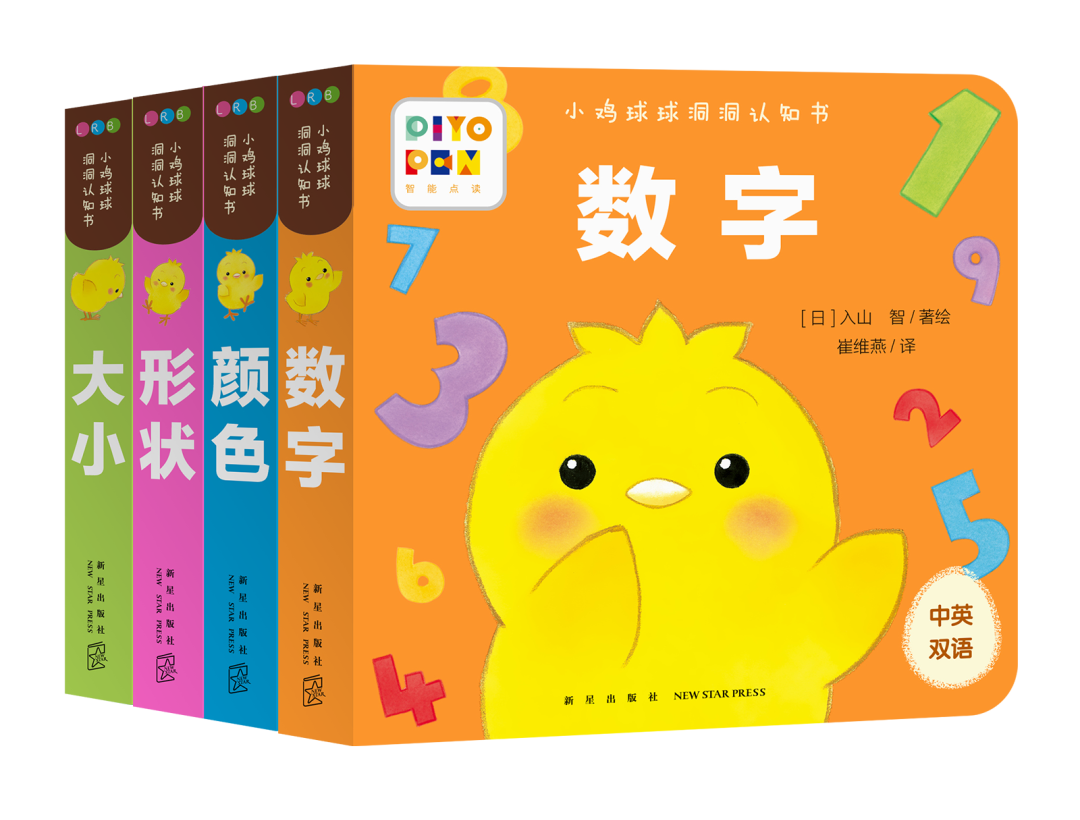 这时期,前面半年一直在亲子共读的触感书和一起玩2套,就可以有更多机会跟小宝宝本宝亲密接触,获得孩子更多的探索式阅读。此时,还有2套新宝贝要加入进来了《小鸡球球洞洞认知书》和今年新上市的联合原创《小鸡球球发声书》。