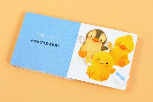 跟手动作有什么关系呢?因为我们这套采用的是“触控式”发声的工艺。小手摸到就发声,孩子需要寻找、用小指头去触碰一下。市面上那么多发声书,小鸡球球有什么不同?