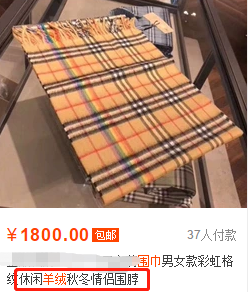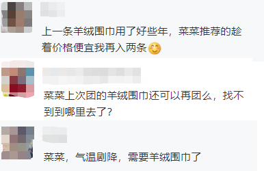 品质好、克重大一点的纯羊绒围巾,18年给大家推荐过一款,一条都要400多块。放到现在就更不用说了,一条就得600+,甚至上千元!而像优X库300+的羊绒围巾,其实克重和尺寸都很小,一条才100多g,薄薄一层,保暖性还是没有厚围巾好的。另外,尺寸太小,围一圈就没多少了,造型感太差了,戴上就像80年代的工厂女工