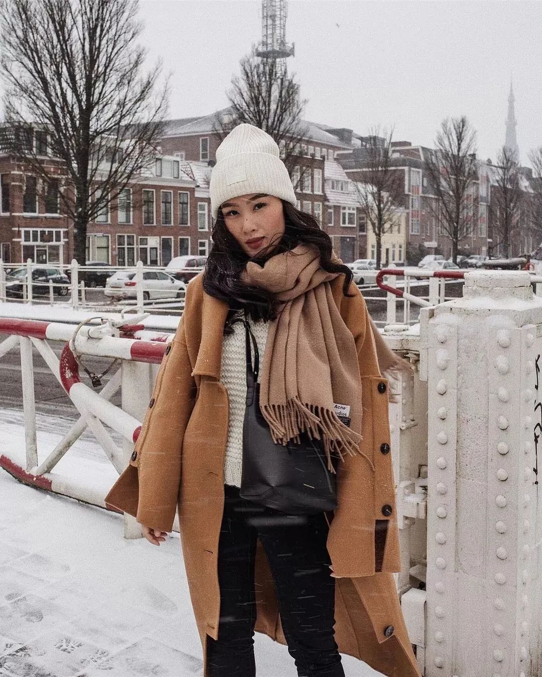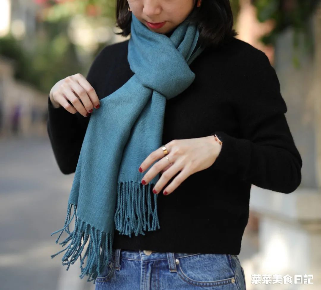 风就像长了眼睛一样,从脖子灌到全身,凉飕飕的~即便是不太冷的天气,我也会在办公室会放上一条大围巾当小毯子用。(毕竟广州的室内会比室外冷得多)冷的时候围上或披上,热的时候就取下来,保暖也得体,办公室也能披着御寒。它还是不分南北的凹造型利器,点亮全身穿搭关键的一笔。带来色彩的变化,打破秋冬穿搭的沉闷,让你的世界不再是黑白灰~单穿一件衬衫或者针织衫,总会觉得有点单调,一不小心还会穿成银行职员,加上一条围巾,时髦度立升10度!即使是一身的黑,有了围巾的加持,瞬间丰富了层次感,整个穿搭都变得高级了起来