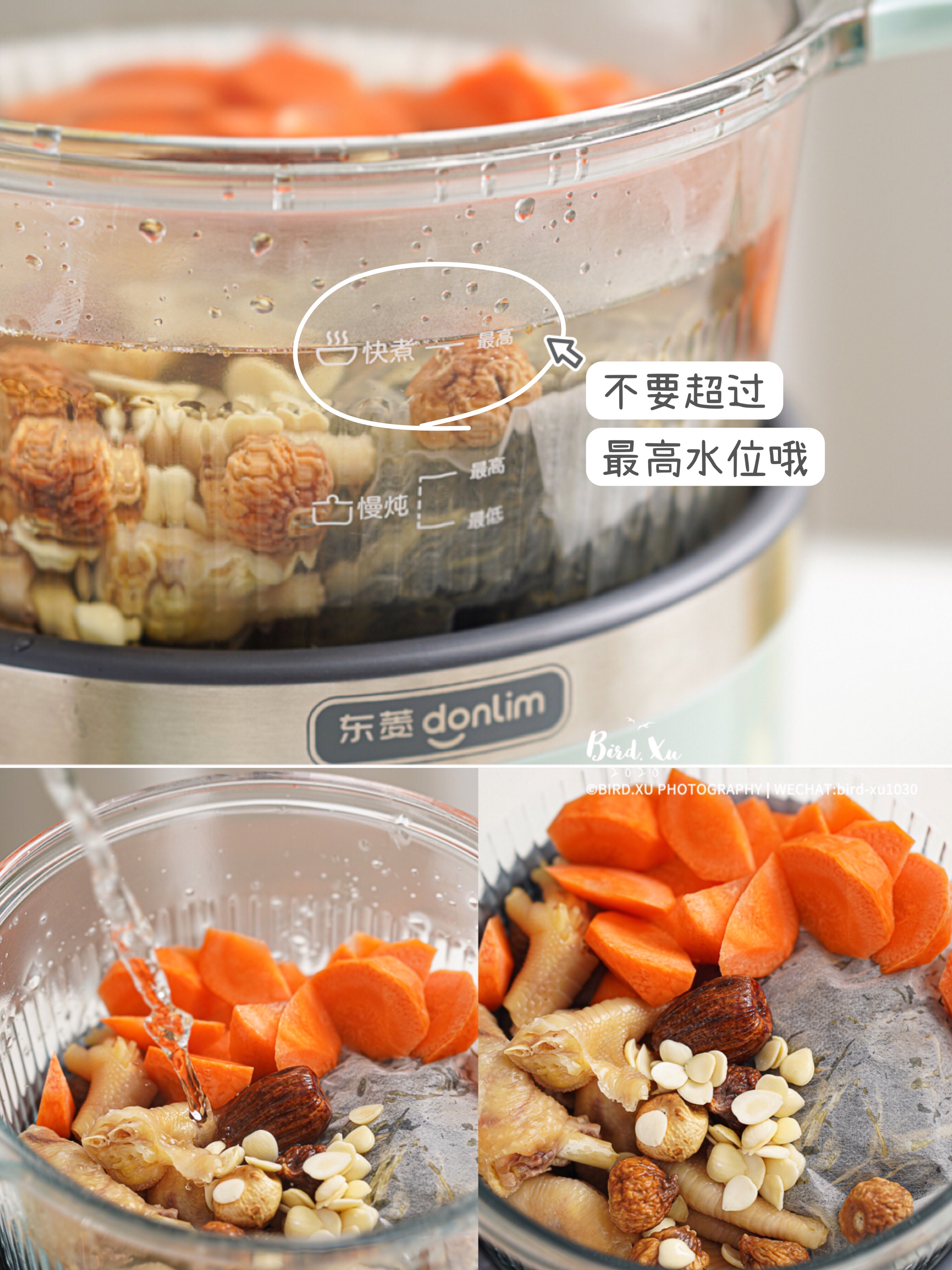3. 全部食材入锅~加水至最高水位,开始煲汤啦~~~