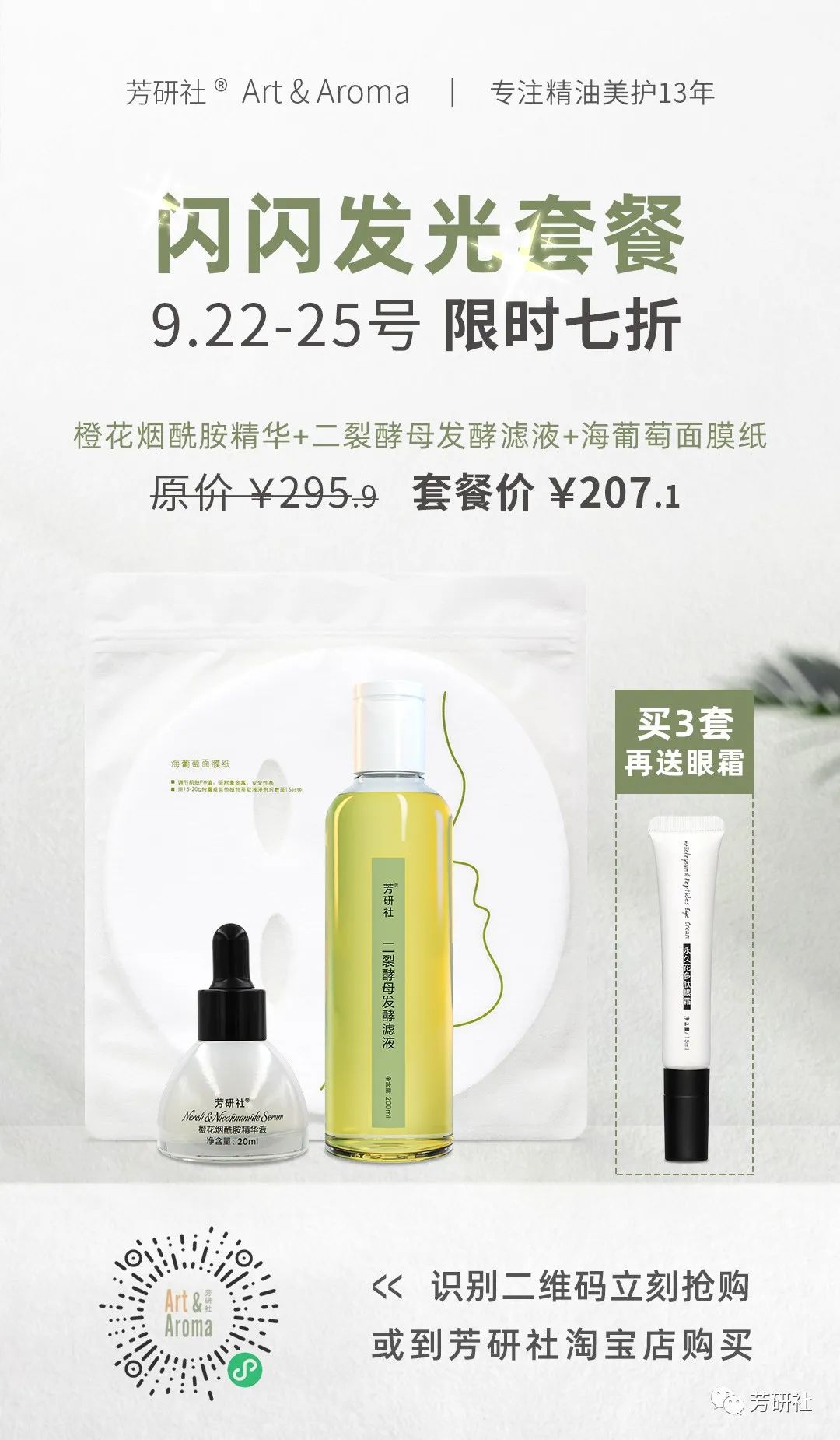 这就是为何推出烟酰胺和二裂酵母的套餐,前者美白,后者维稳,让皮肤稳定在新的白皙程度上。