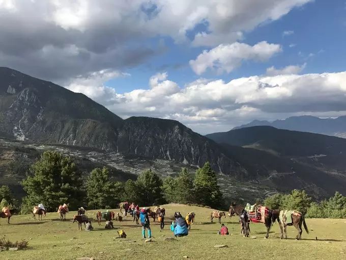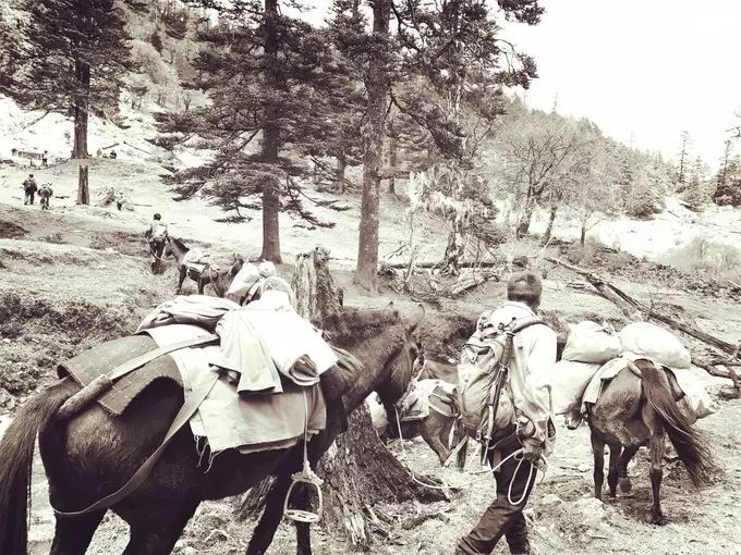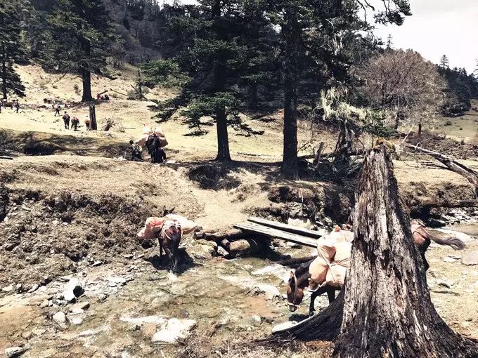 我们的大登山包也都是由这一匹匹骡马驮上大本营,自己只背着小的登山包。