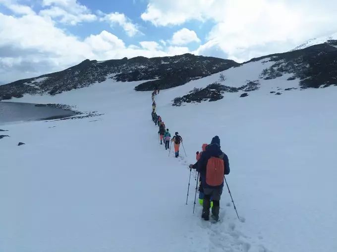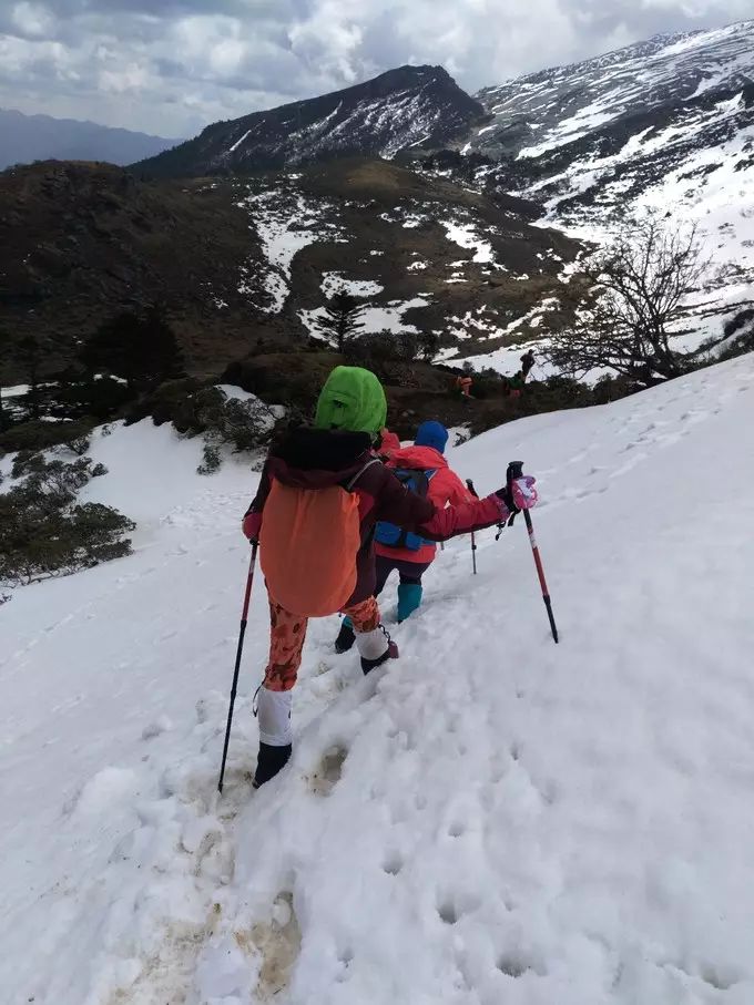 然而中途不断的有前方的队友中途下撤,有的流鼻血了,有的头晕恶心,有的冻的手脚失去知觉,有的因山路险峻觉得太危险放弃......太打击人心了