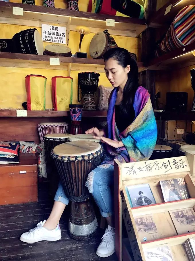 我比较钟爱手鼓,路过大军的手鼓店,手又痒痒了,巧在大军哥正在招女店员,这把我心痒痒的呀~