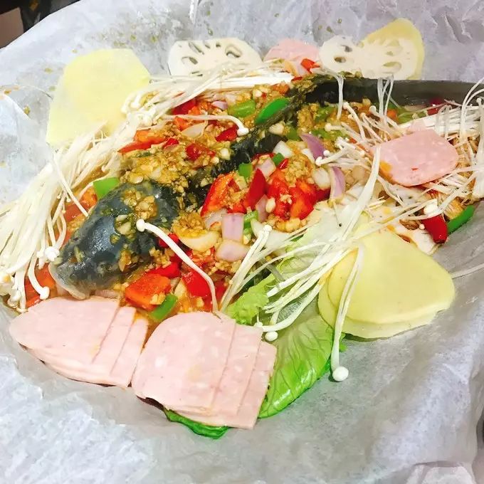 晚饭在附近的这家鱼味吃的烤鱼,这种纸上烤鱼还真是第一次见,味道不错,主要是鱼很新鲜,我们两个人反正是吃得净光,只剩一根鱼骨了,当然这边最出名的还是石锅鱼,几乎家家都可以吃得到。