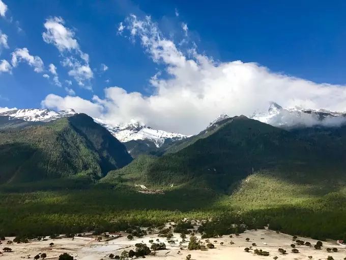 早起跟车出发前往哈巴村,一路寻找着即将敬畏的这座神山,顶峰一直都是被云儿遮住,看不到真面目,我们祈祷着登顶那天千万要好天气。没办法,高山的气候多变,这点大家都清楚,想要成功登顶不光要有好的体力、耐力,好的装备,更重要的是好的天气、运气。