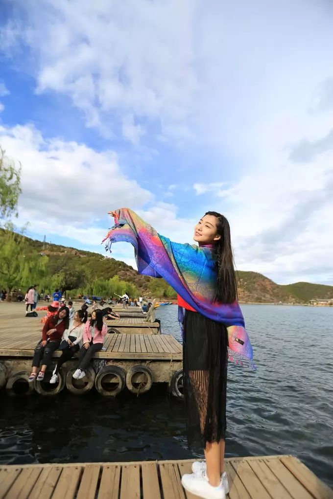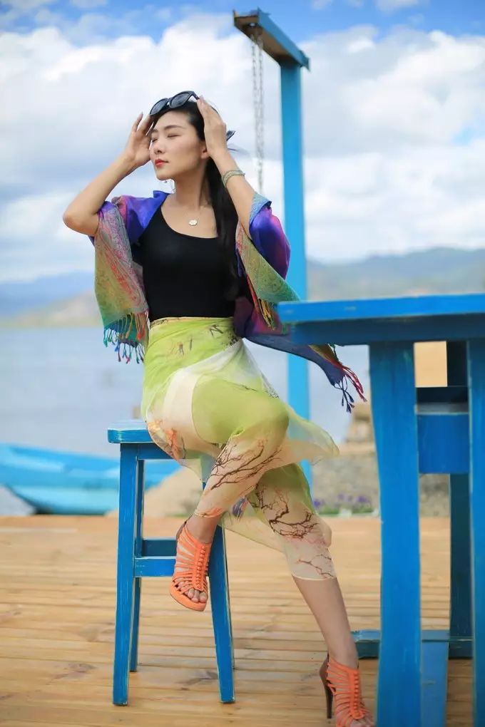 这么好的天,赶快出来拍照哇,换上高跟鞋,继续把丝巾当裙子使,就是这么任性!