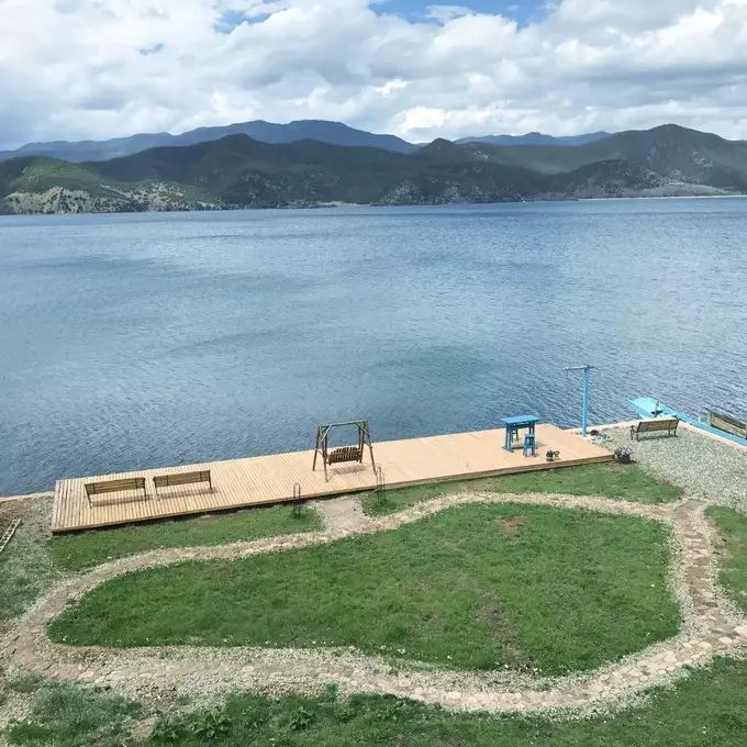 这第三家客栈便是湖光倾晨了,是离湖最近的一家店了,门前绿草地和观景台设置的也很唯美。房间更是好到让我吃惊,这哪里是二百多元的房间呐!而且我们住的时候貌似只有我一间房客,蒗放的淡季真是安静到极致了,像是来到了另外一个世界。