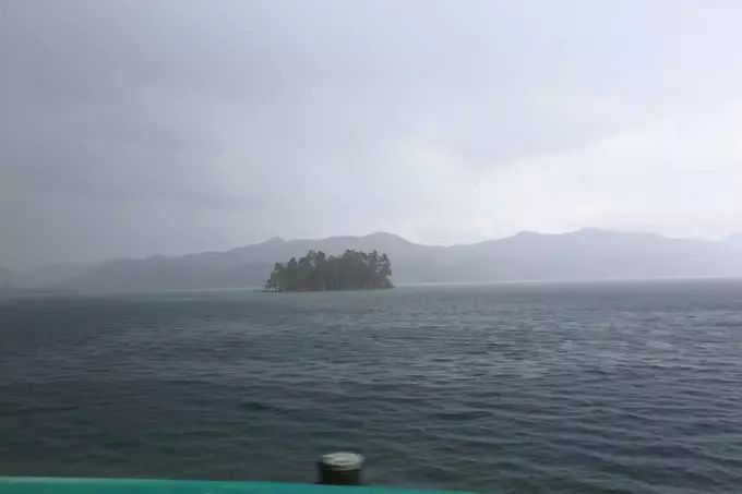 路过一个观景台,这里可以望见里格岛的全貌,湖水的颜色也很特别,是随着天空的颜色变幻,才出现了下图一湖多色的状态。