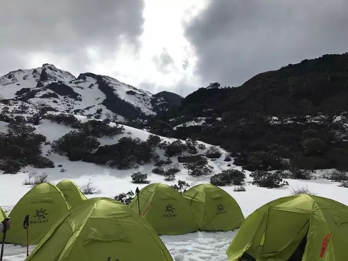 晚上就两个人一间帐篷,我把所有的衣服都穿在身上钻进睡袋里,底下铺好防潮垫,晚上依旧寒冷,感觉狂风随时可以将我们的帐篷吹飞,贴近雪地的身体一侧被冻的透心凉。第一次体会到雪山的夜晚有多刺骨。