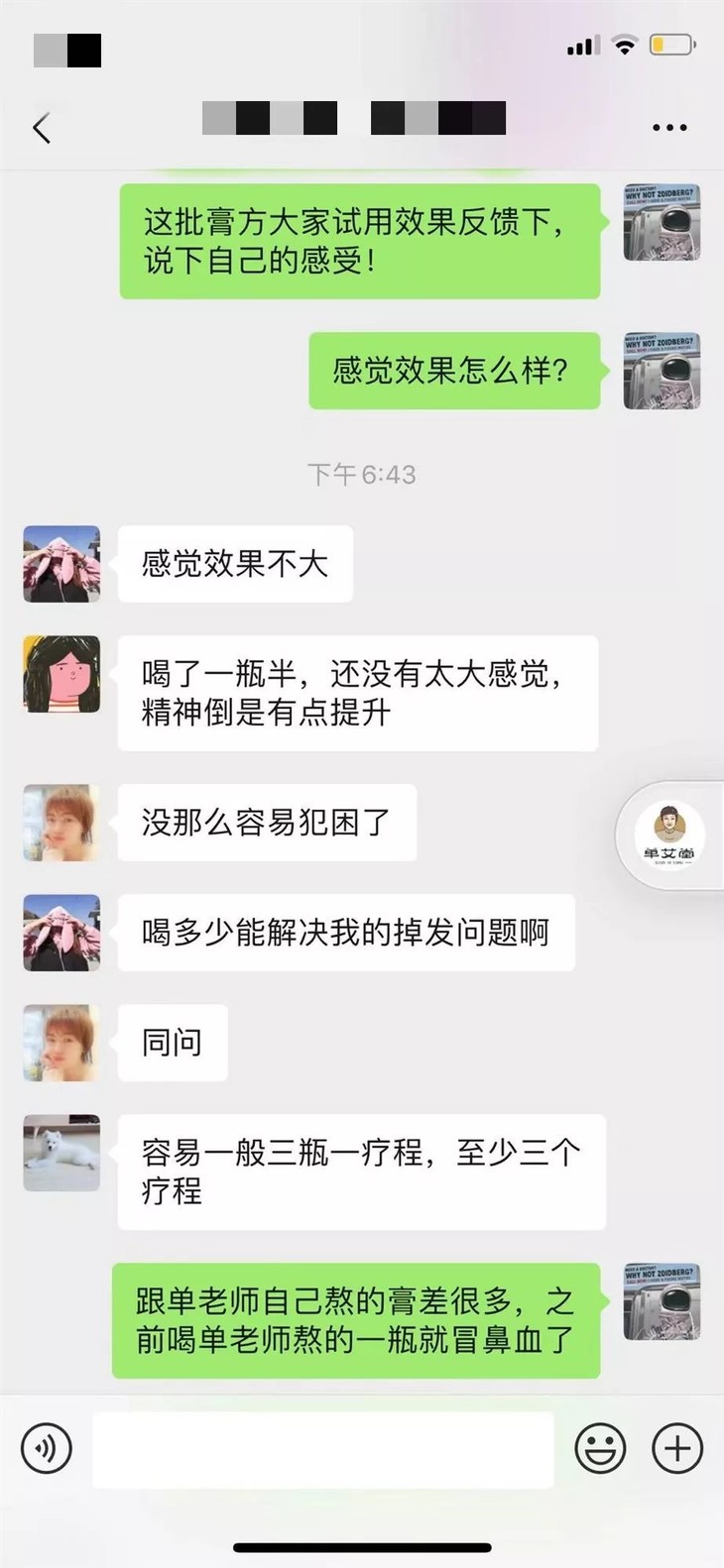 其实这个膏我刚开始让亲戚朋友喝也是有一点担心,因为这个方子是根据我自己的体质来配的,不一定每个人都合适,果然亲戚朋友们给我的反馈也是有的有效有的没效果,所以我就想着既然开始揽了这个事就把它做好。