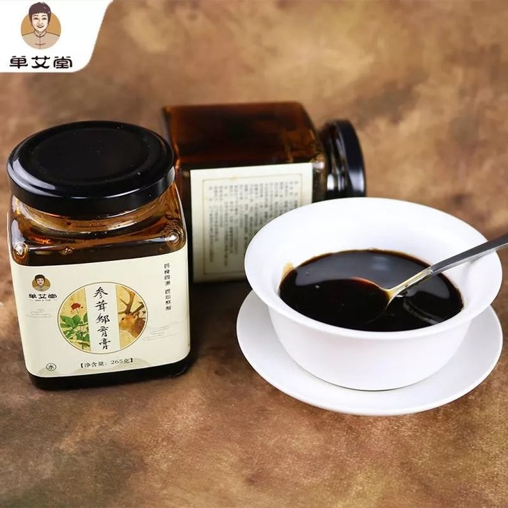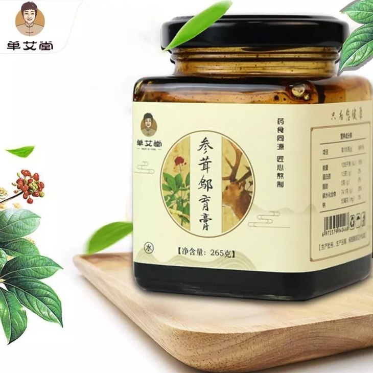 这个膏呢,我给它叫做参茸邬育膏,通过这个名字你可能就知道了,这里边有一个非常重要的是个名贵药材——人参、黄芪、肉桂、黄精等。经过三次改良的补肾膏,营养上更容易被人体吸收,日常食用也非常方便。
