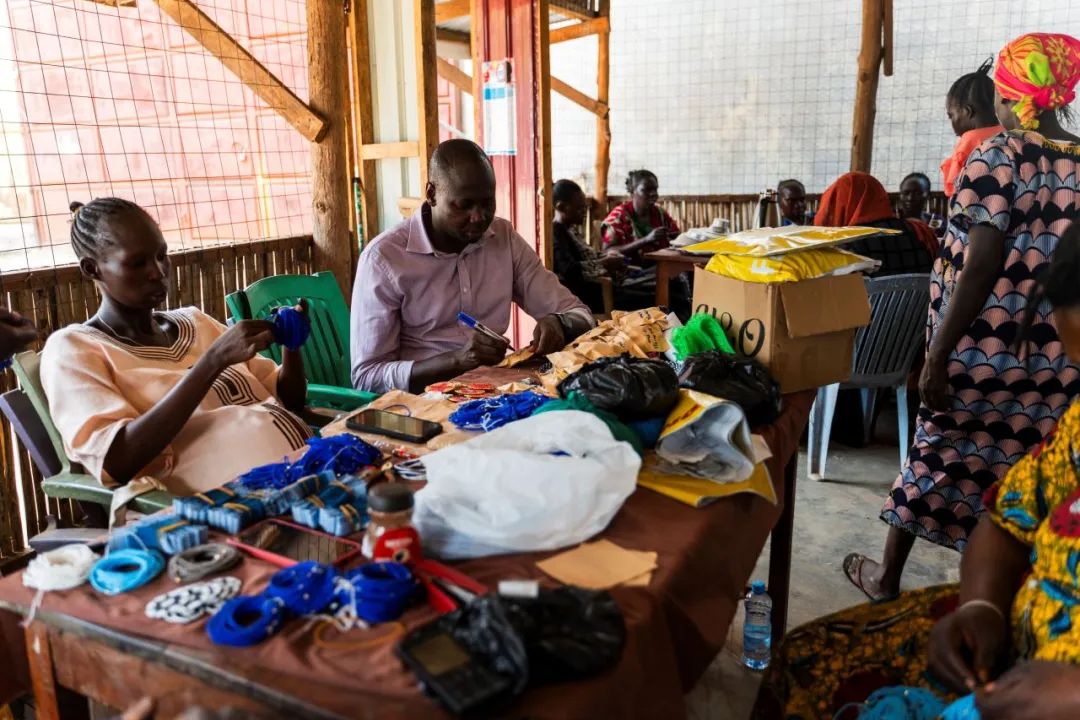 难民工匠在制作“和平希望”钥匙链。© UNHCR/Ala Kheir
