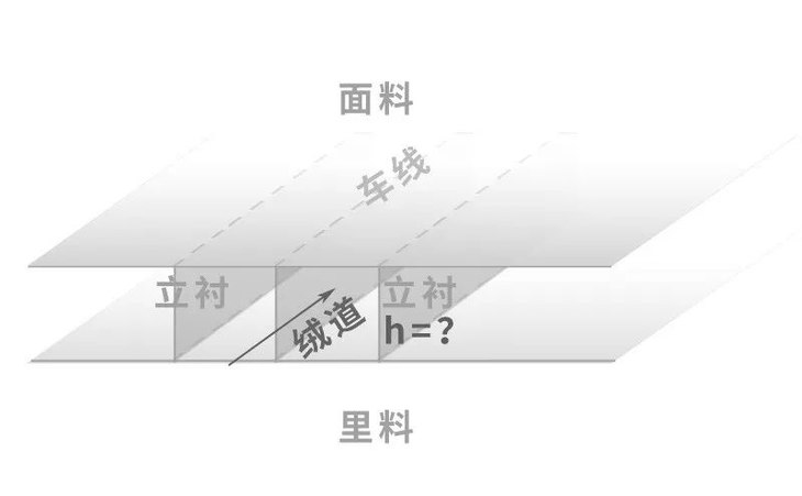 即立衬的长边,一边与面料缝合,一边与里料缝合,并且这个高度是根据充绒量合理计算出来的。