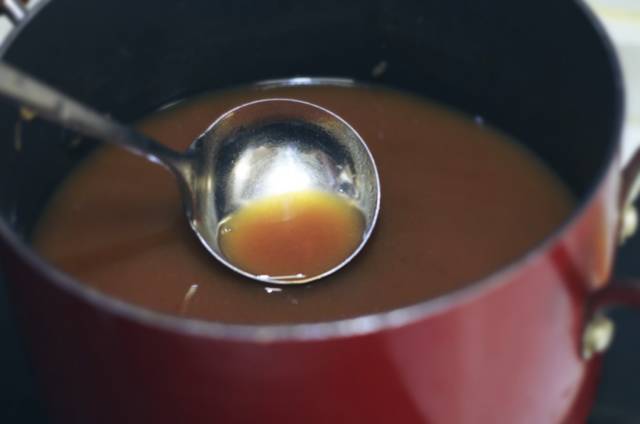 3、将汁水放入锅中,大火烧开,熬制30分钟,
