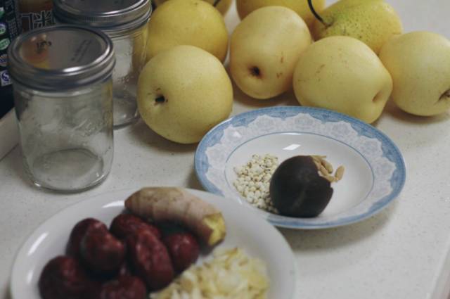 大红枣4—5顆,冰糖1两,百合与姜,各20g;