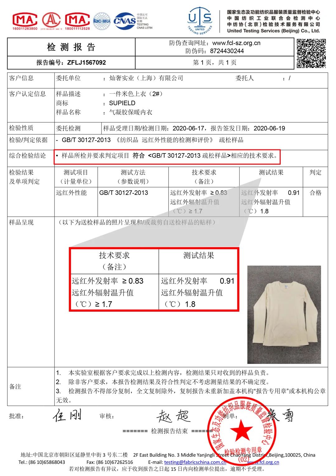 素湃保暖内衣保温率检测报告