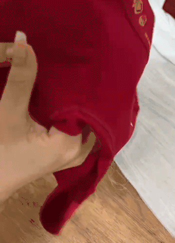 将吉祥图案和祝福文字缝在腰头上,被好运、财富环绕腰围,预示着今年红红火火。