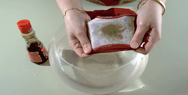 我们用酱油模拟分泌物/姨妈血,“污渍”轻轻一搓就干净,毫不费劲。