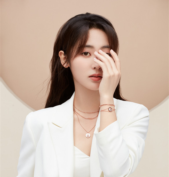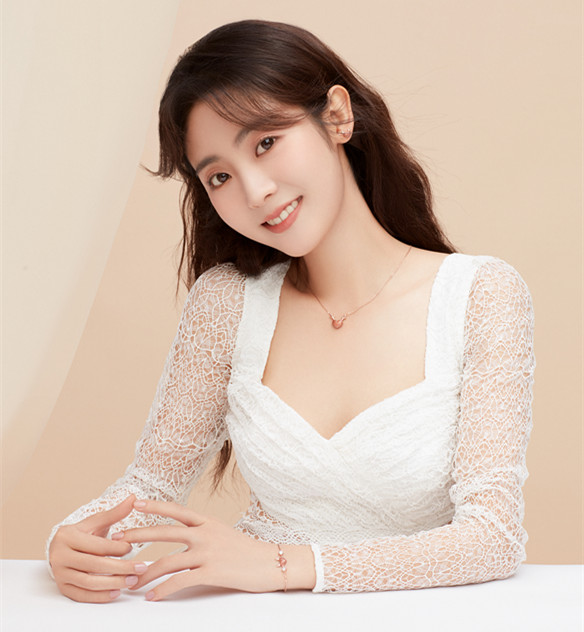 这款不仅有项链,还有手链和耳钉,而且都镶嵌了天然钻石,璀璨华丽,浪漫精致。这样高甜的设计,难怪能让菲菲子直呼心动!