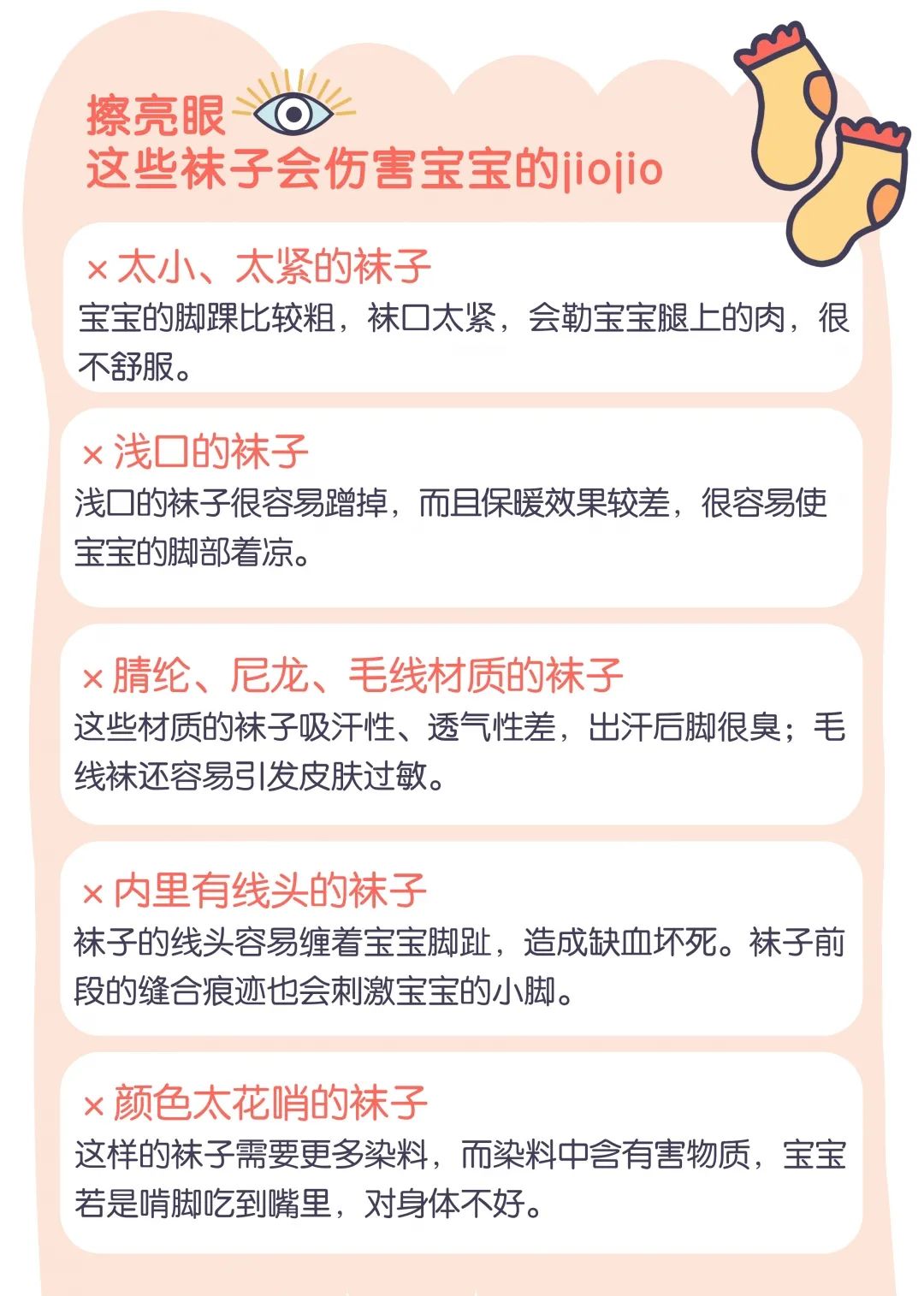 给宝宝买袜子也是有讲究的,有些袜子并不能给宝宝穿,具体是哪些呢?接着往下看吧