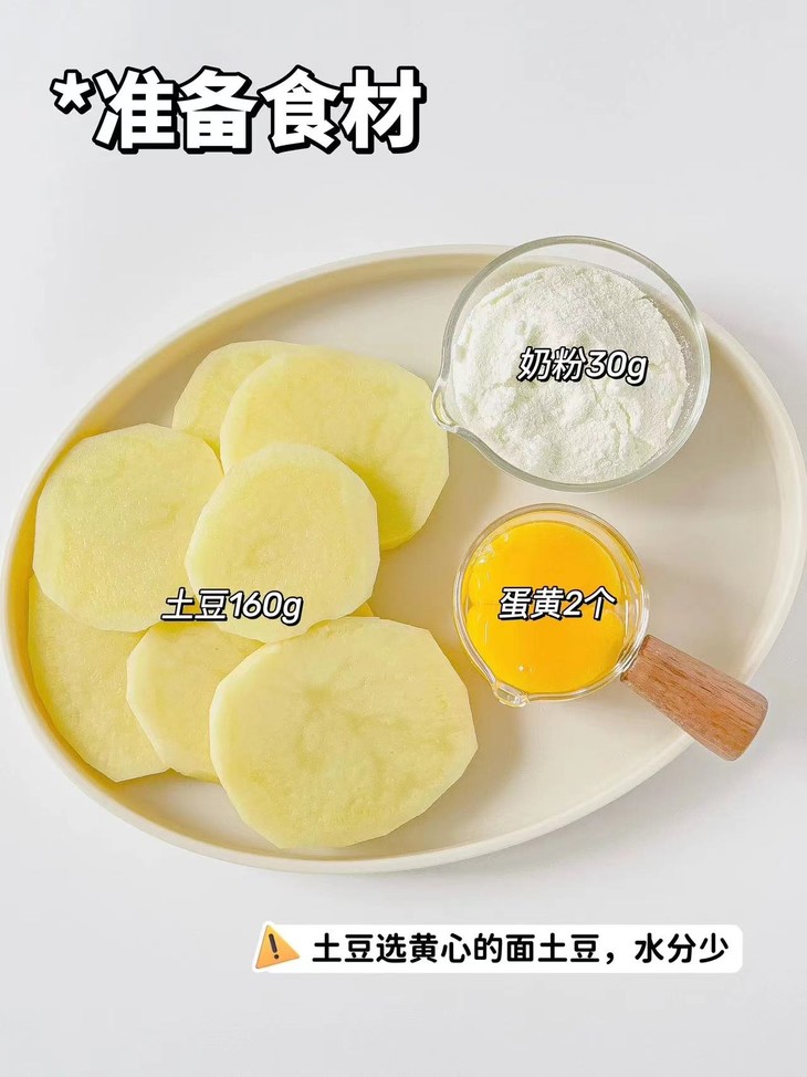 准备食材:土豆160g 奶粉30g 奶黄2个
