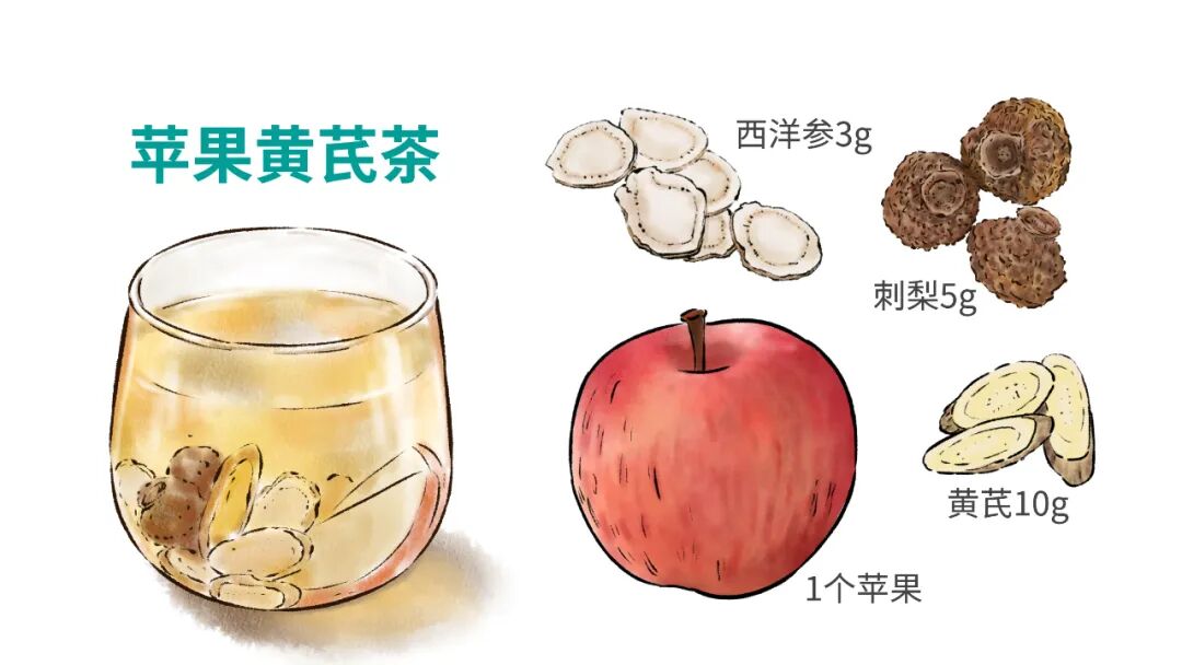 既然规律不了,那咱们就只能吃点喝点补一补了。像这杯补气小甜饮——苹果黄芪茶,秋冬就可以经常喝一喝。