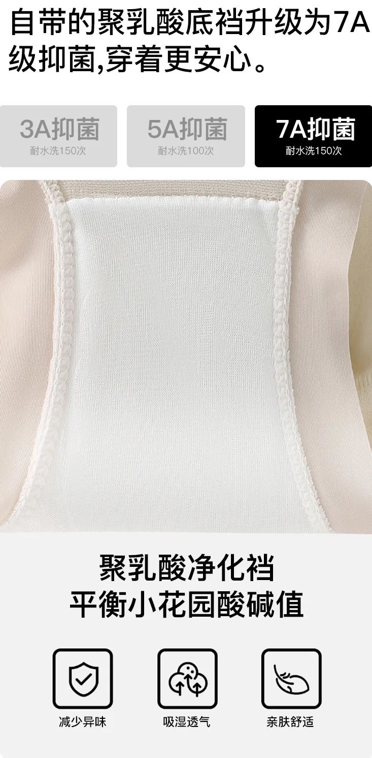 裆底特意采用桑蚕丝面料+聚乳酸纤维,又软又舒服,还能平衡私处的酸碱度,避免异味、瘙痒。