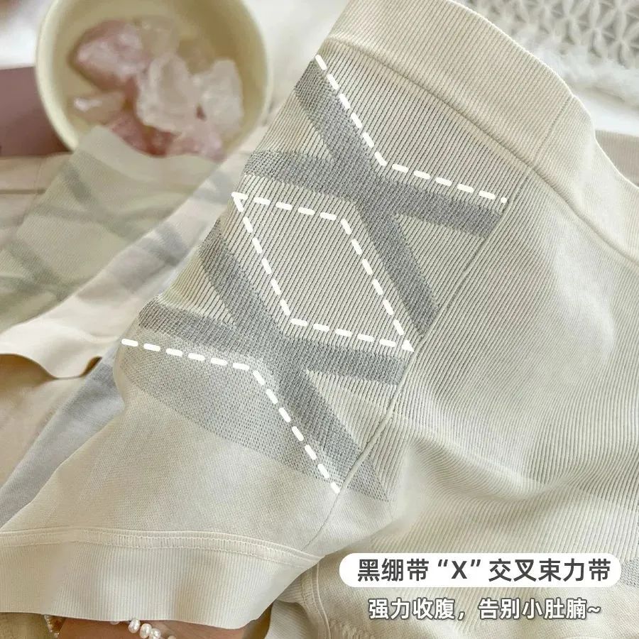 腰腹两侧都有做x型黑绷带设计,能够对腰侧两边的肉均匀分散施压,一寸寸抚平腰间赘肉~收腹效果吊打普通高腰内裤!