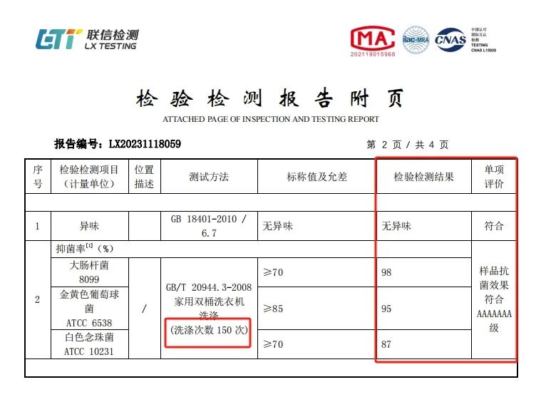 真正的7A级抑菌标准,支持水洗次数超过150次。