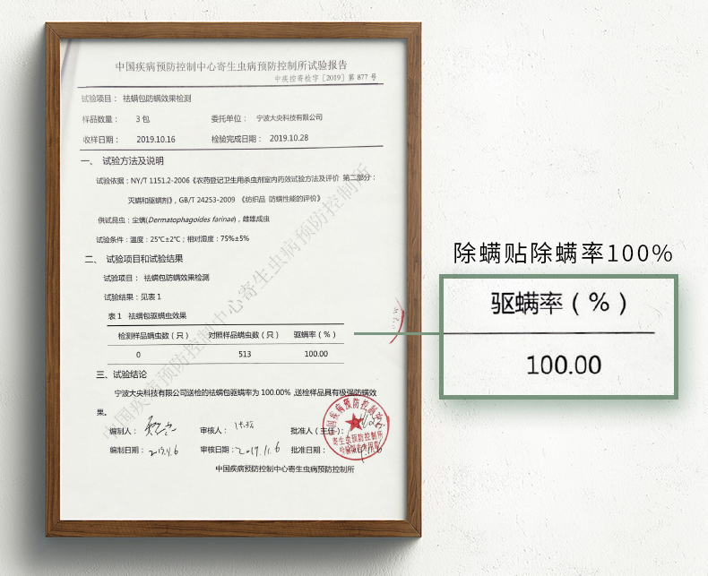 国家也为我们把好了关:中国疾病预防控制中心检测报告,除螨率100%。