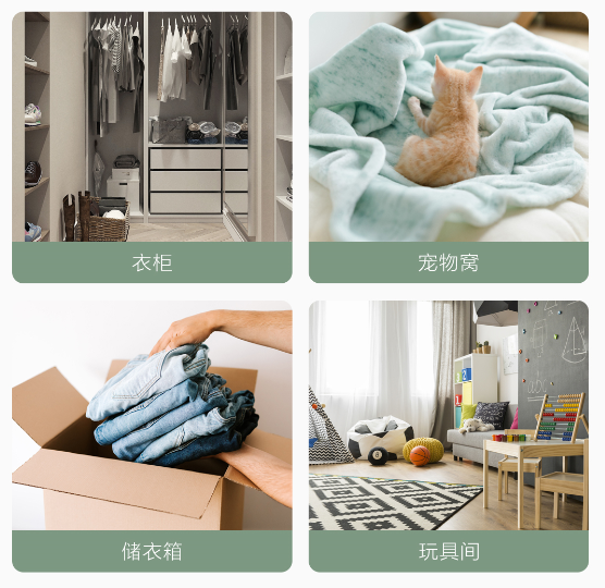还有宠物窝、婴儿床、衣橱、bb车,只要经常呆的地方都放一片,给你一个真正放心安全的家。