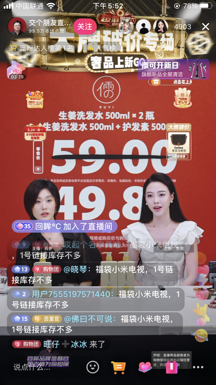 好产品,一定是大家都认可的,这款生姜洗发水,罗永浩的「交个朋友直播间」也推荐过,上架几分钟就被抢光了!