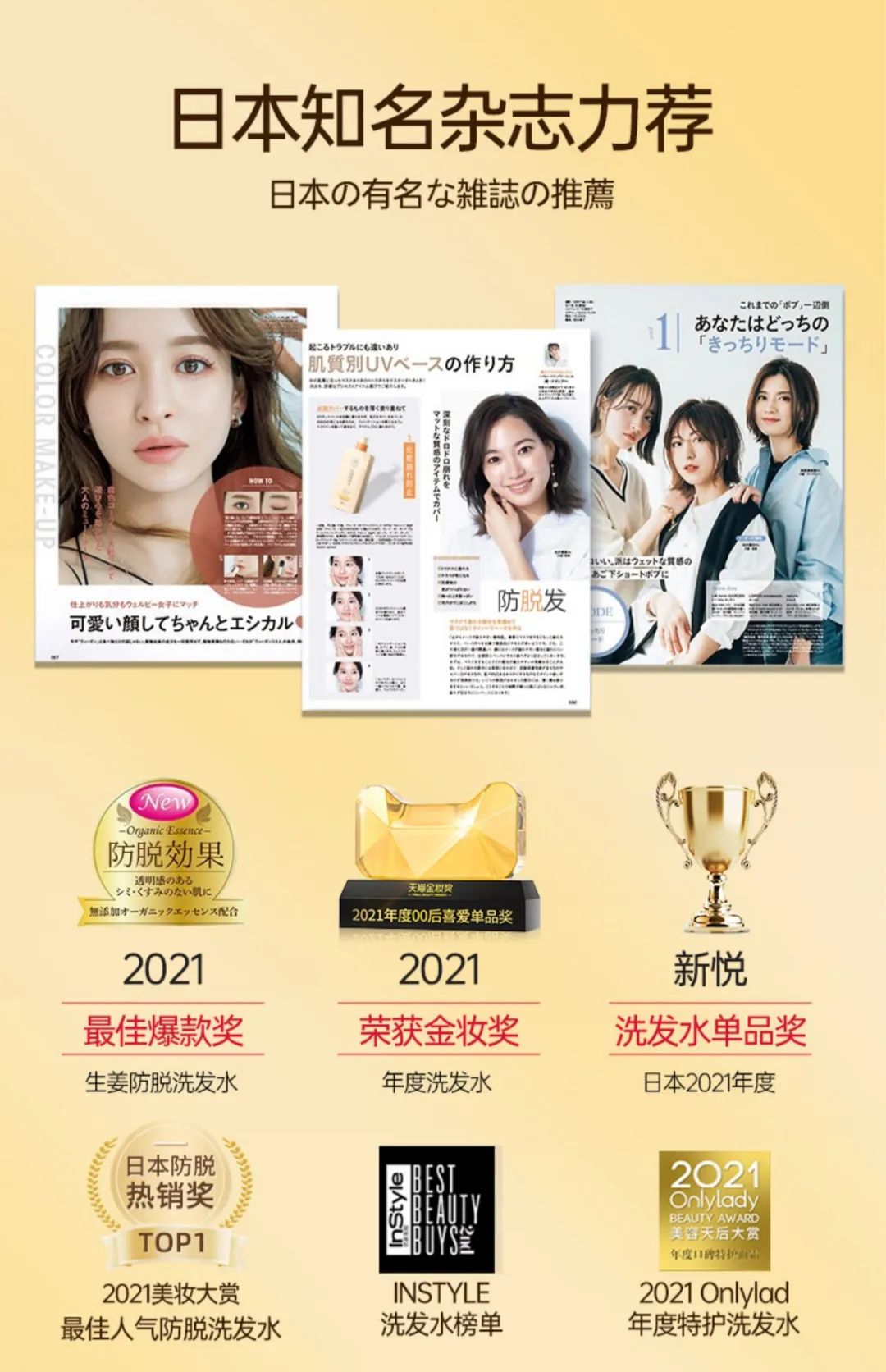 这款生姜洗发水在香港/日本等各大药妆店都有销售,还获得了日本知名杂志的大力推荐!