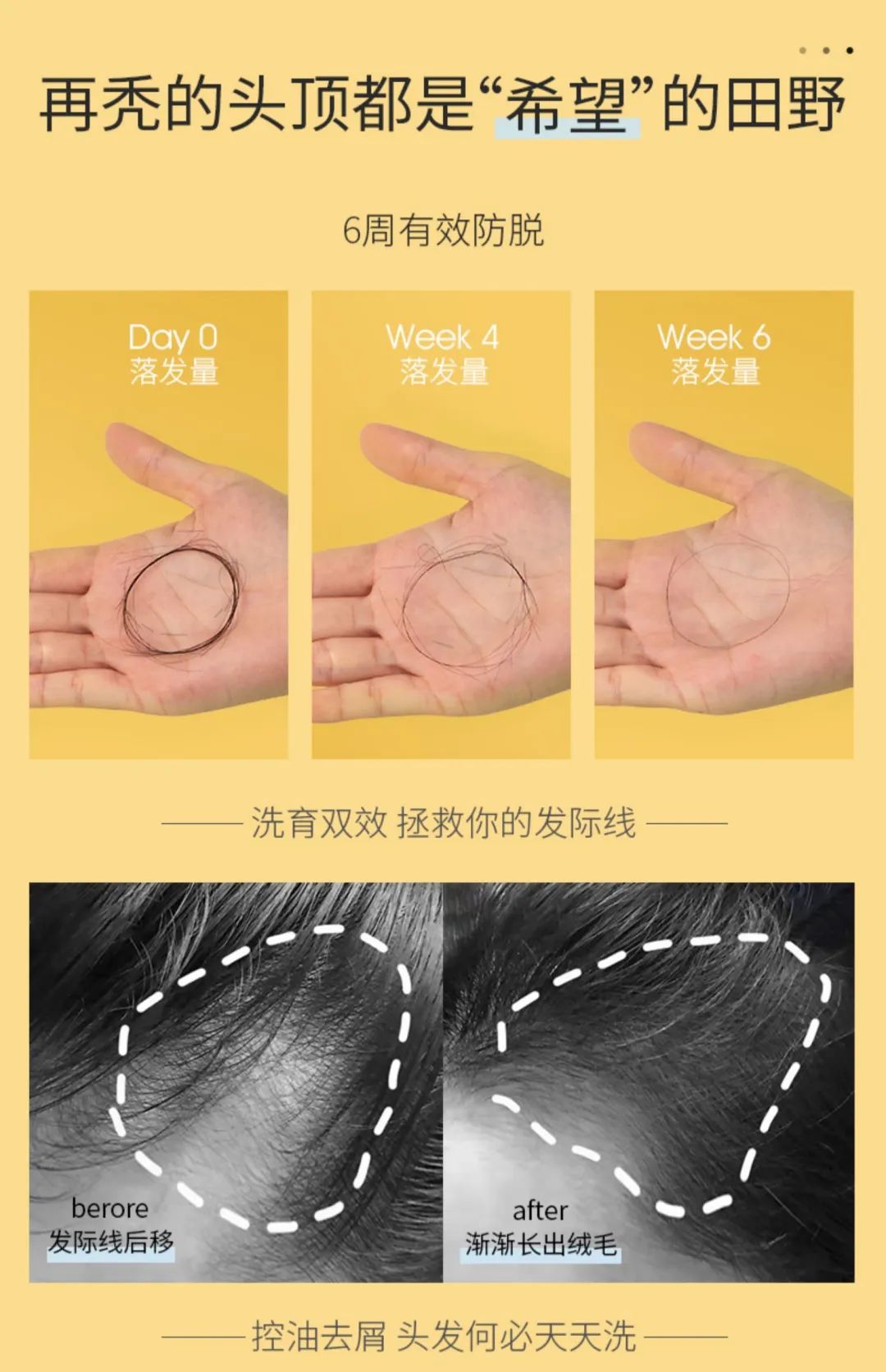 头发不油了,细小的毛发也逐渐长了出来,头皮更健康,头发更有韧性,可以说是一瓶解决你的脱发困扰!