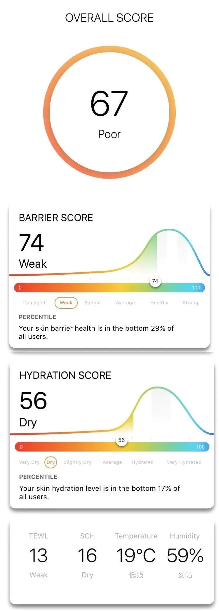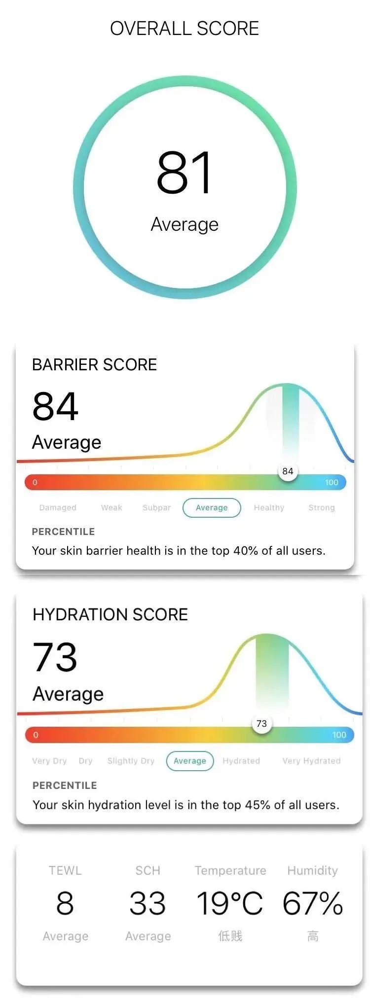 根据皮肤检测仪的数据显示: