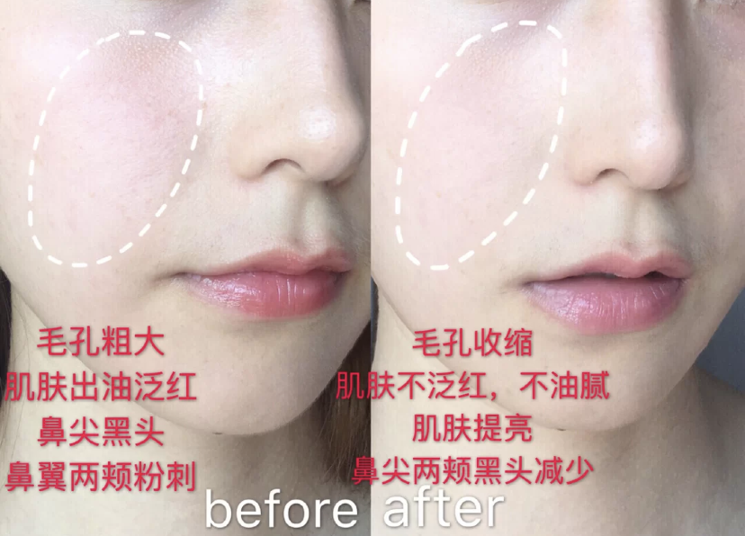 使用白泥清洁后,再上水乳吸收毛孔,然后照镜子你会发现,黑头真的少了一圈,肉眼可见!毛孔也变得细腻!