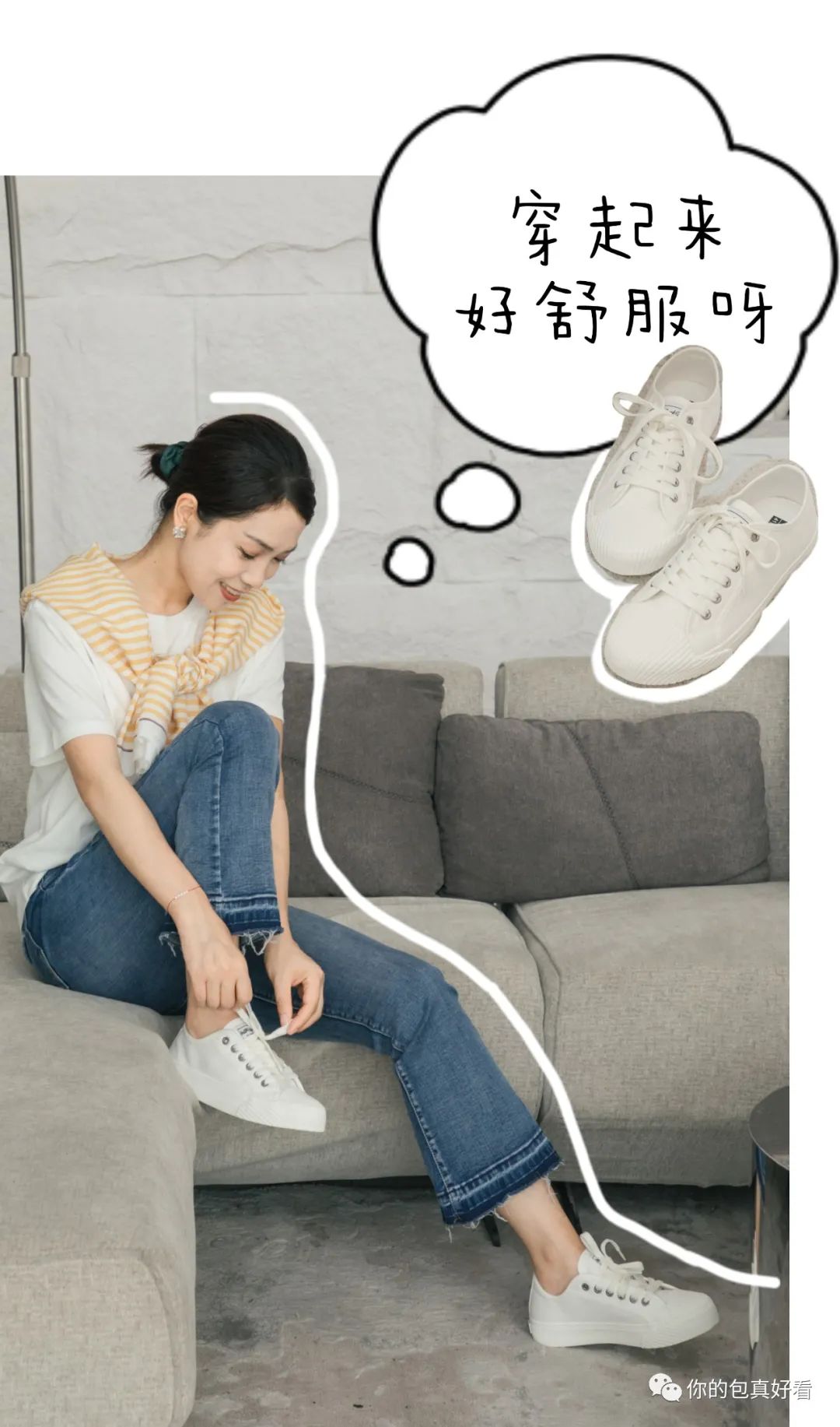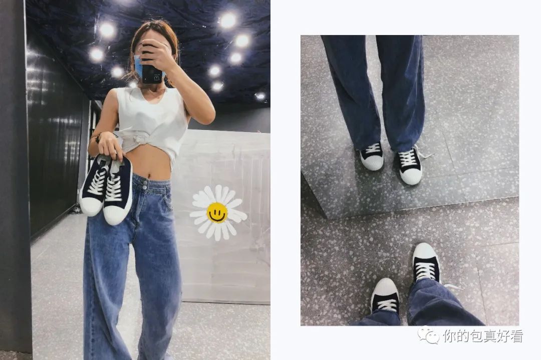 我们也请了平时喜欢韩系休闲风穿搭的大银来为我们试穿,她一开口就说:“ROCKFISH帆布鞋yyds!!!”