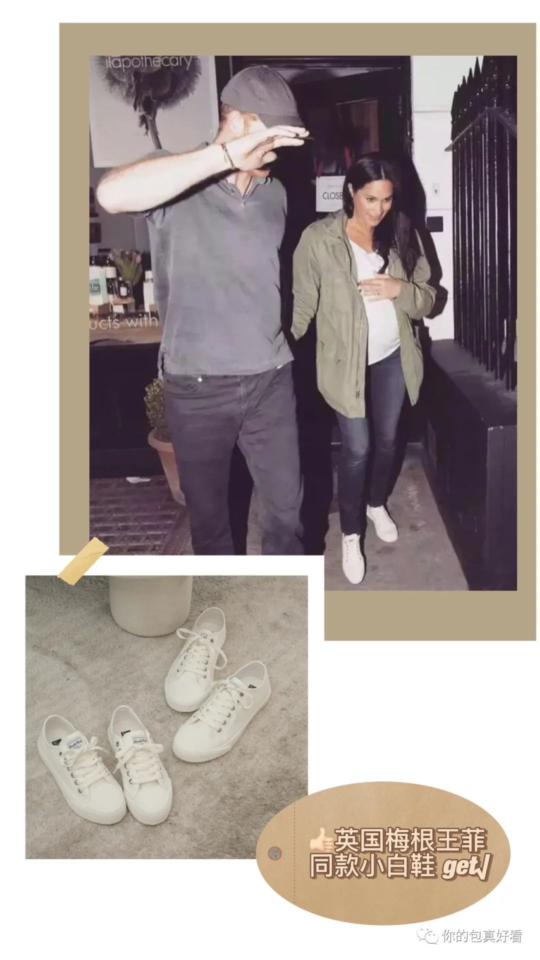 不知道你们是不是和我一样,每次踩过雨水的鞋子一进商场或洗手间,踩在光滑的砖面就很容易打(扑)滑(街),这款天然的橡胶底自带防滑耐磨功能,走起来会更稳。当年英国的梅根王妃怀孕期间也穿了ROCKFISH的小白鞋呢!