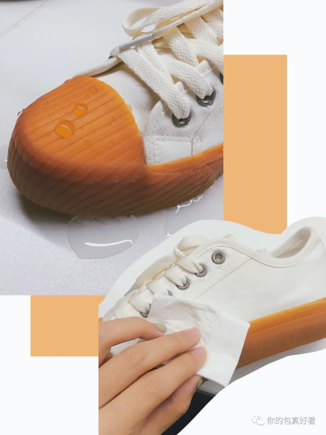 有了隐形雨衣的ROCKFISH 小白鞋,即使是雨天被污水弄脏了,及时用纸巾轻轻一搽,也可以秒变干净!”