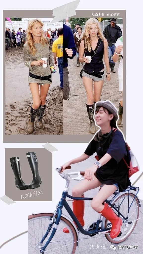 先给还不熟悉ROCKFISH小白鞋的姐妹补补课,这是一个来自大不列颠的Cornwall(康沃尔)鞋履品牌,主打舒适、简约的雨鞋款式。传统的长筒雨靴国民度呼声很高!Kate Moss音乐节的私服穿搭就很爱穿这款雨靴。