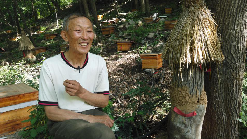 第一次见到“蜂王”是在边外林场的后山上,70岁的老爷子一身白色T恤,袖口有红黑围条,领子上别一支笔,嘴巴里叼着根烟,皮肤黝黑,精神矍铄,手臂上还有令很多年轻后生都羡慕的肌肉。