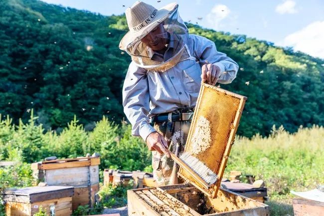不是“蜂蜜大王”不是“养蜂大王”,“蜂王”这个称呼,咋听起来就像蜂群中的那个蜂王,他把自己归入了它们的一员,他更喜欢和它们之间是一种合作共生的关系,参与它们的辛勤,分享它们的甜蜜。