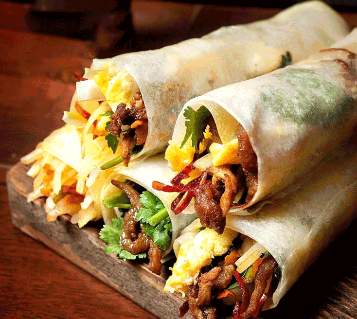 柔韧的筋饼、酱香的肉丝加上爽脆的黄瓜和香菜,多种滋味在嘴中一起炸裂,那种感觉可太爽了!一顿吃十个都觉得不过瘾!