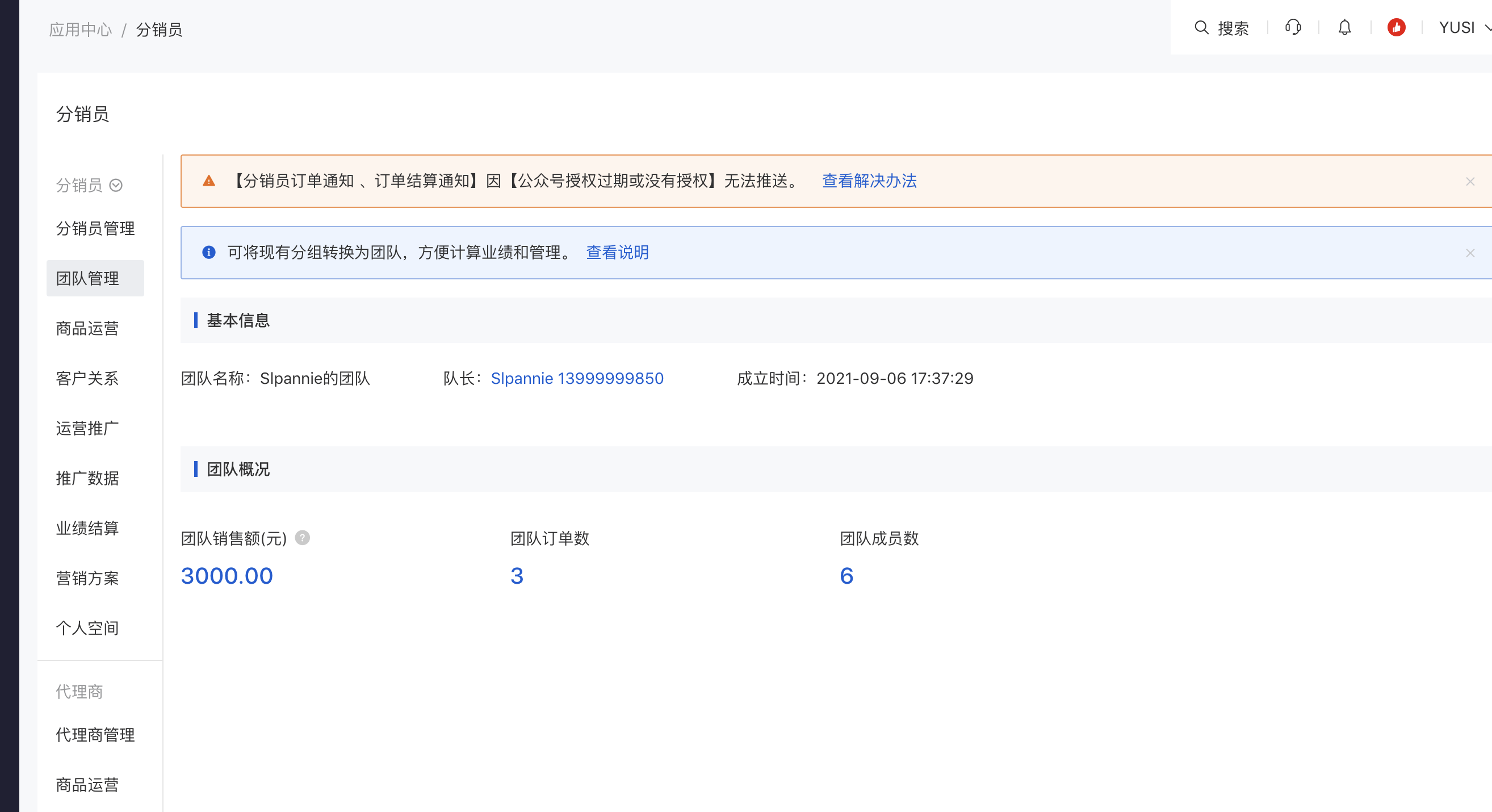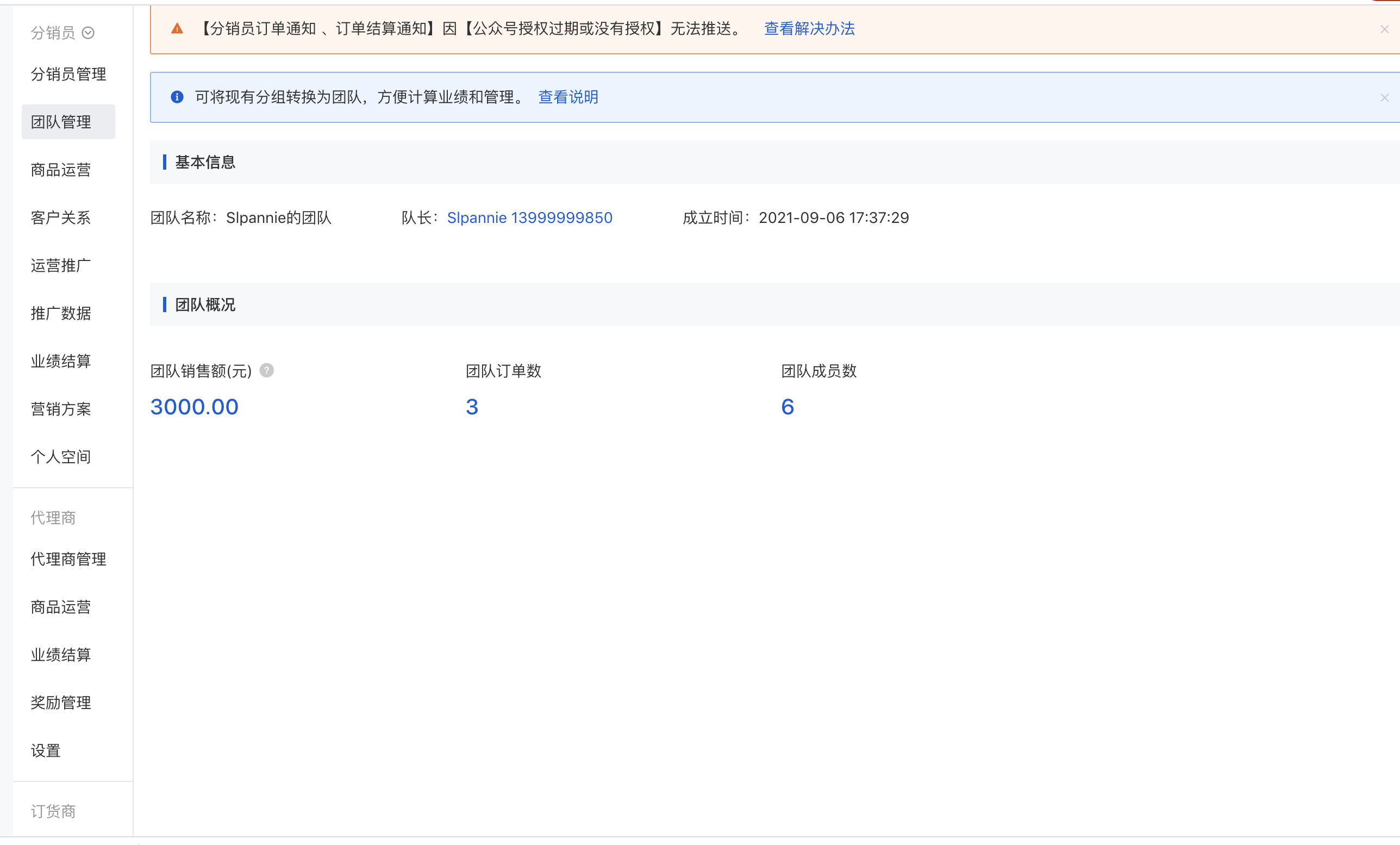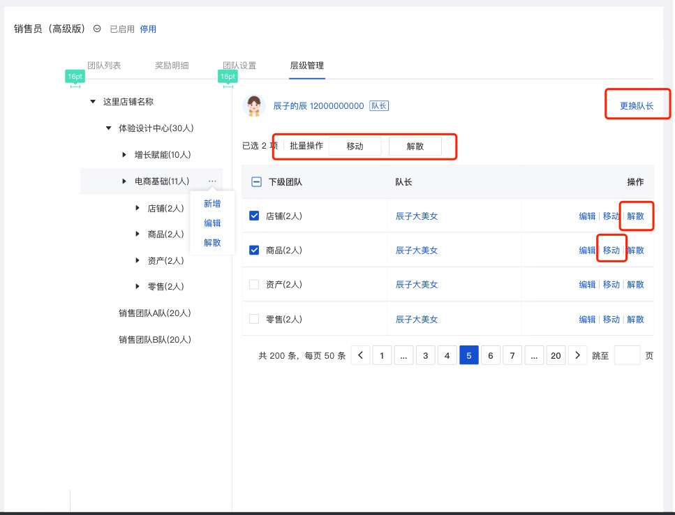 更改队长:支持更换团队长。更改后原管理团队的队长无团队归属;原销售团队的队长会成为自己团队的成员