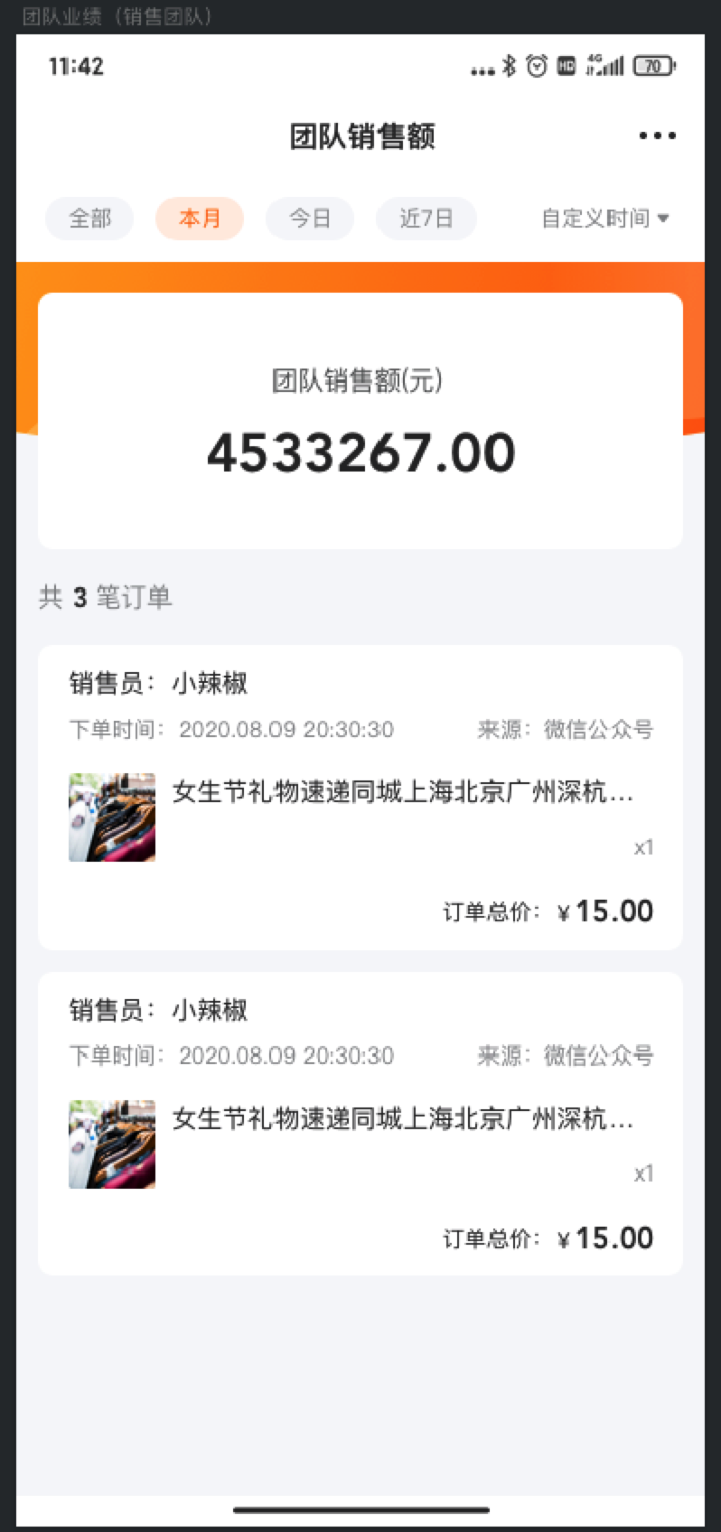 销售团队详情页仅展示该团队的订单数、销售额、成员数